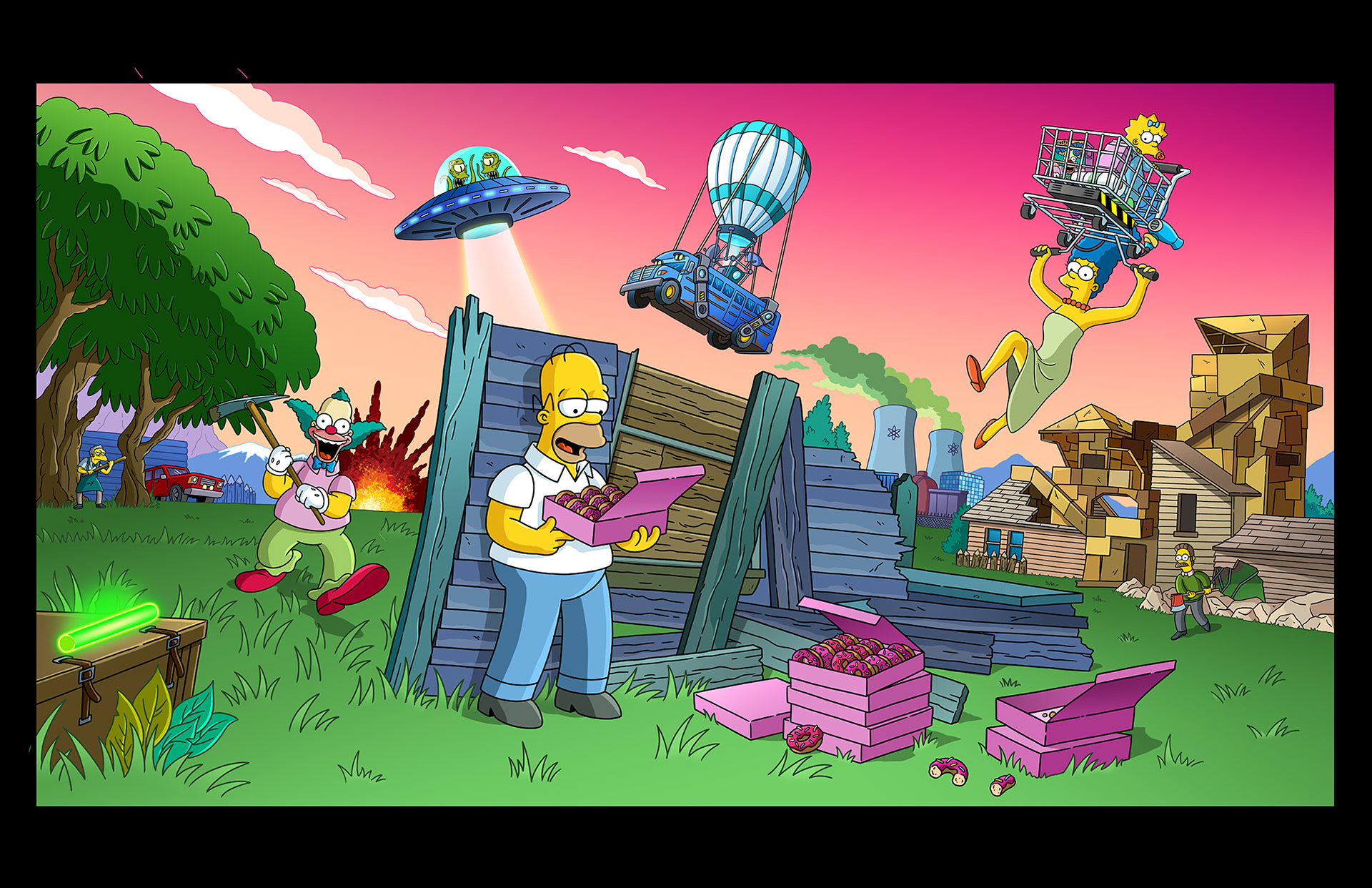 Coloring for the Simpsons + Fortnite game screens